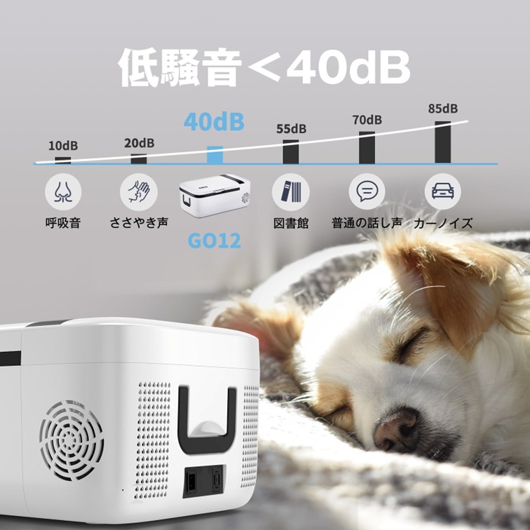 15分間で25℃~0℃まで:SECOPコンプレッサー搭載するGO12、急速冷凍、-18℃~10℃調整でき、15分間で25℃~0℃まで冷却でき、アンチバンプコンプレッサーにより、40度以下でも安定した動作を実現しています。