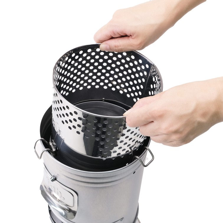 缶ストーブにセットすると、ドラフト効果と二次燃焼がさらにブーストされ、